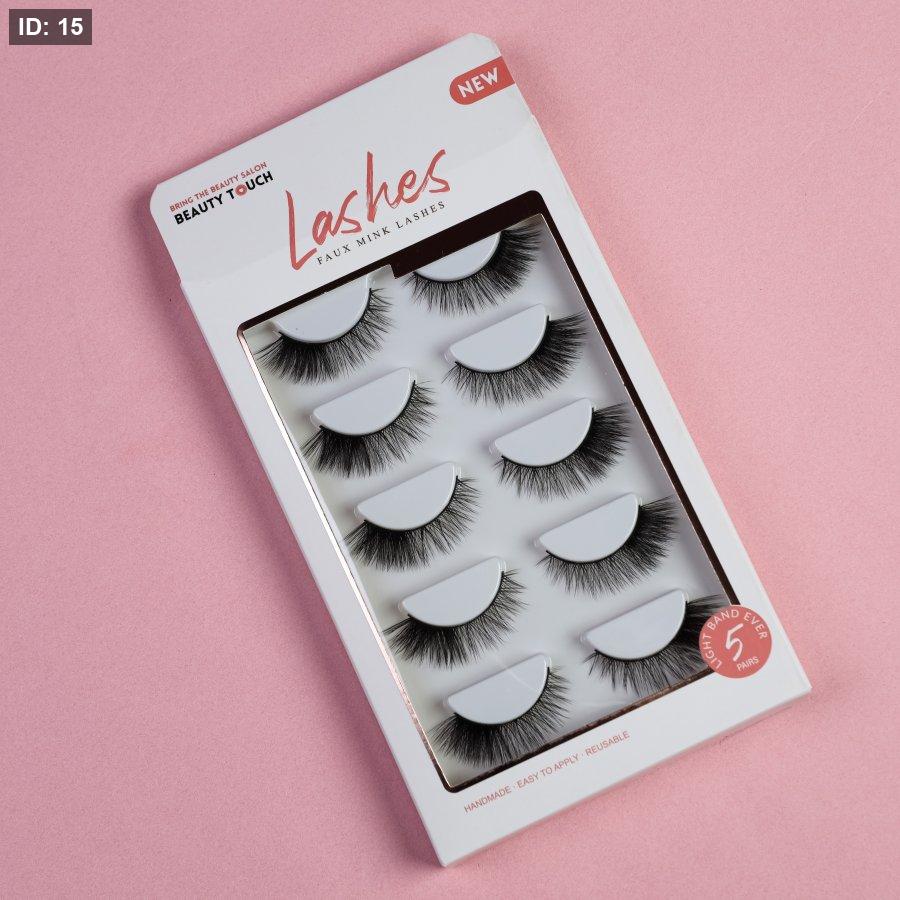 تحتوي كل علبة على خمس أزواج من الرموش الأقرب للطبيعي بجودة ممتازة، لتوفير مظهر مذهل يدوم طويلاً. -مثالية لتلبية احتياجات زبوناتكِ مع ضمان الجودة العالية والسعر المميز الذي يعزز ربحيتك.